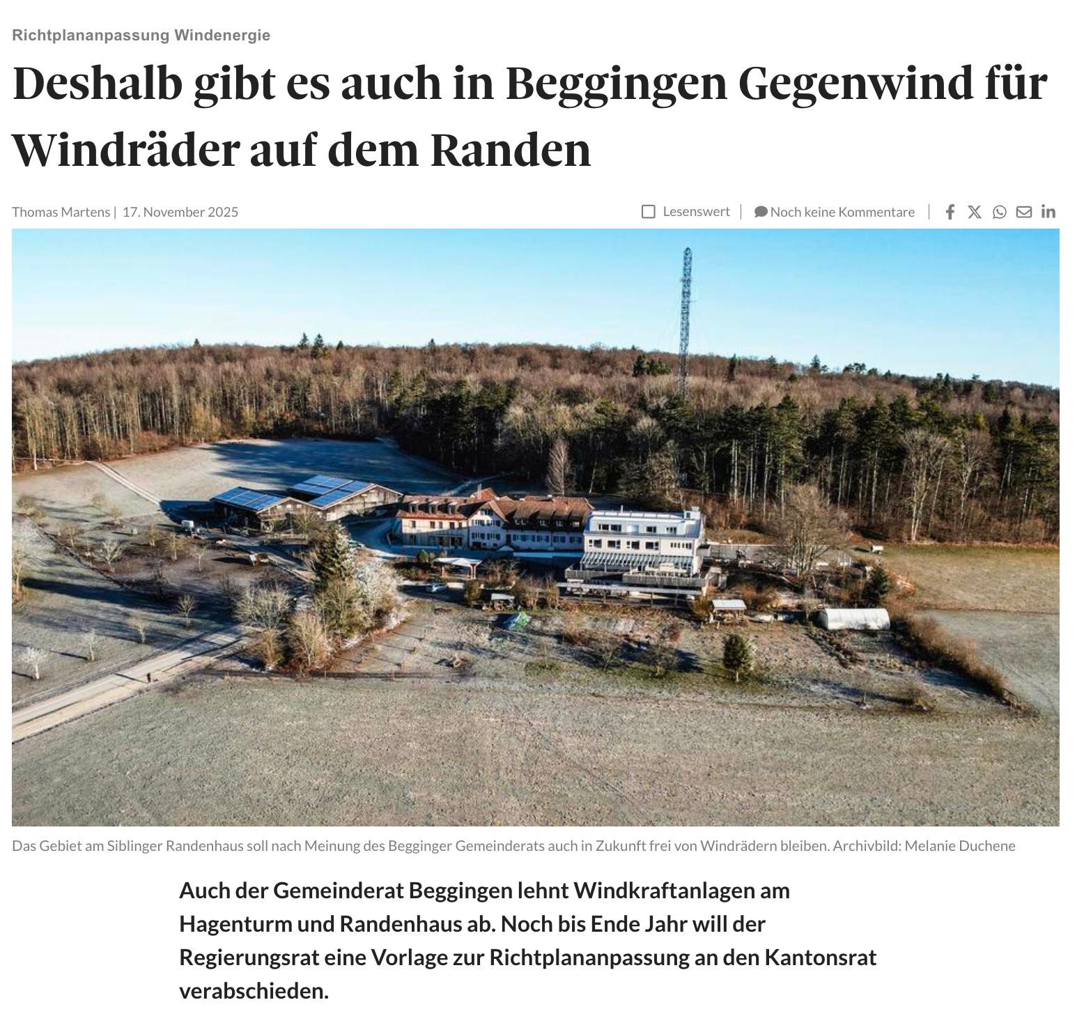Gegenwind für Windräder auf dem Randen